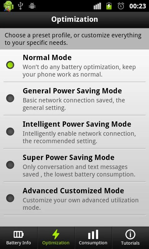 Easy Battery Saver é fácil de usar pelos seus quatro modos pré-definidos e um modo de customização avançada. Selecione um modo e seus problemas irão embora.