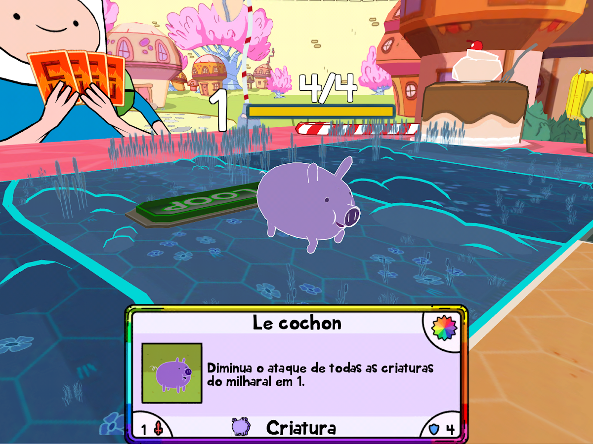 Gire o Porco! É a GUERRA DE CARTAS de Hora de Aventura! Participe do jogo inspirado no episódio "Guerra de Cartas", de Hora de Aventura! Invoque criaturas e jogue feitiços para vencer.